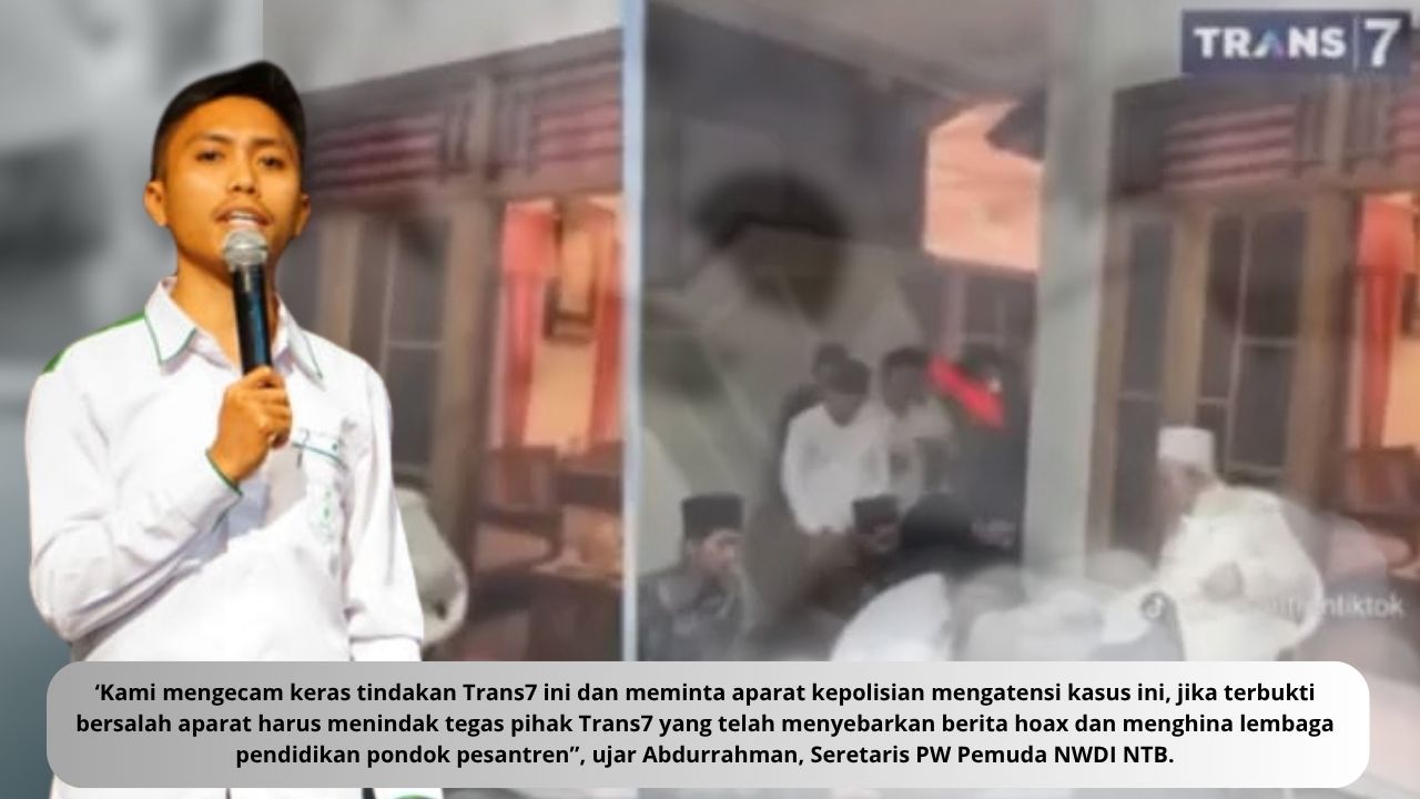 Mandalikaupdate.com, MATARAM – Pimpinan Wilayah Pemuda Nahdlatul Wathan Diniyah Islamiyah provinsi NTB mengecam keras terhadap tindakan Trans7 terkait tayangan tradisi sowan di pondok pesantren yang tengah viral di media sosial. Trans7 dinilai telah menghina santri dan kyai pesantren yang selama ini telah berjasa besar bagi perjalanan bangsa Indonesia.